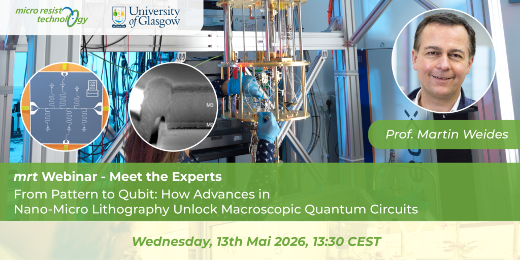 In diesem Bereich können Sie sich über die Neuigkeiten aus dem Hause micro resist technology informieren. Wir halten Sie immer auf dem Laufenden bezüglich neuer Forschungsprojekte, Konferenzen, sowie veröffentlichen wir regelmäßig unseren Tech-Blog.