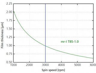 | Resist | Schichtdicke [µm] @ 3000 rpm | Spektrale Empfindlichkeit | Eigenschaften |